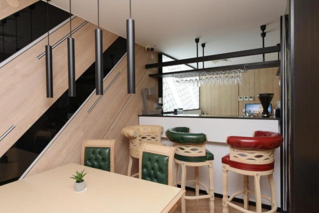 Интерьер: современный стиль с болгарскими этническими элементами, натуральное дерево, стекло, ручная отделка