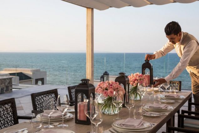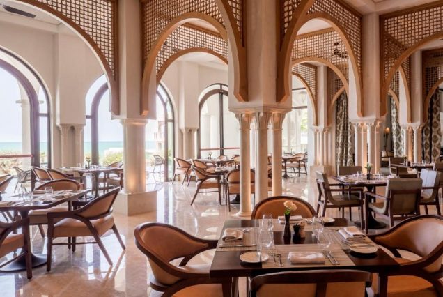 Основной ресторан: The Four Seasons Restaurant — средиземноморская кухня с панорамой на море; подача с 07:00 до 10:30