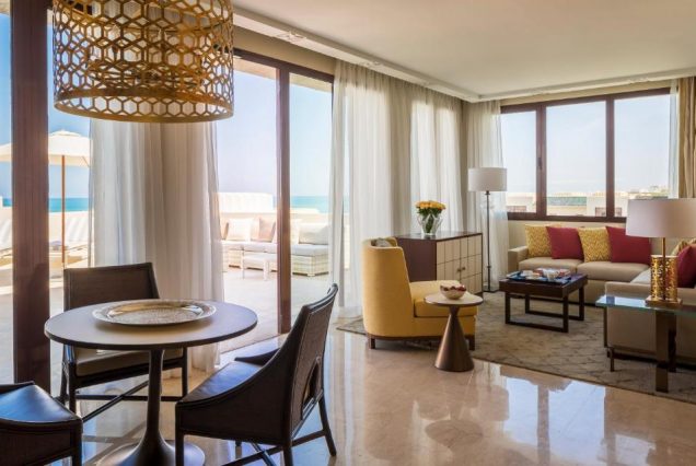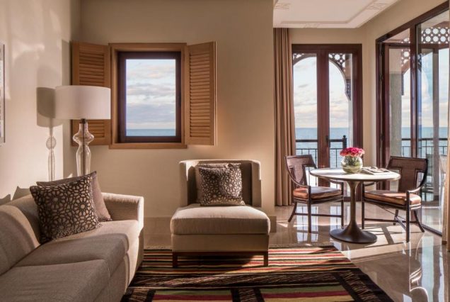 — Приветственный ритуал с освежающими напитками и welcome-фруктами на балконе люкса с видом на море