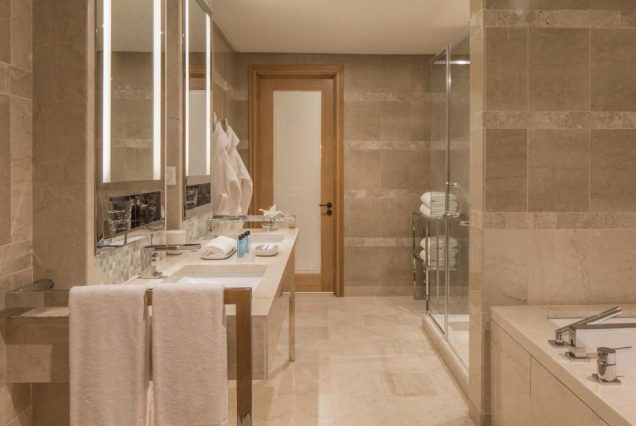Санузел: ванна и душевая кабина, двойная раковина, премиум-косметика и ароматические масла