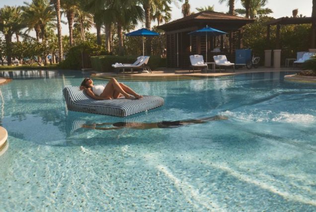 Бассейны: infinity-бассейн с видом на залив, отдельный adults only бассейн, приватные plunge-бассейны (по категории), шезлонги и обслуживание включены
