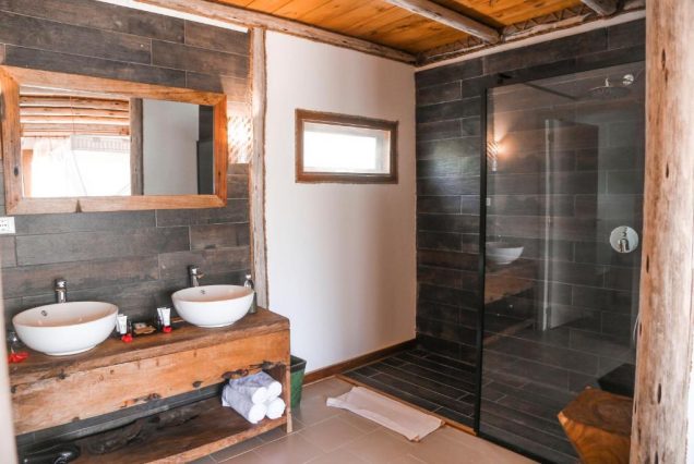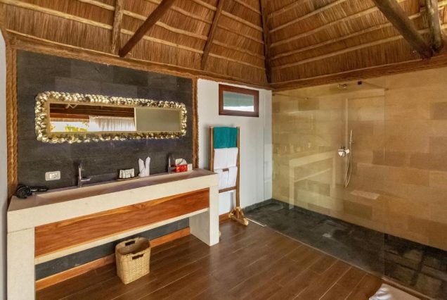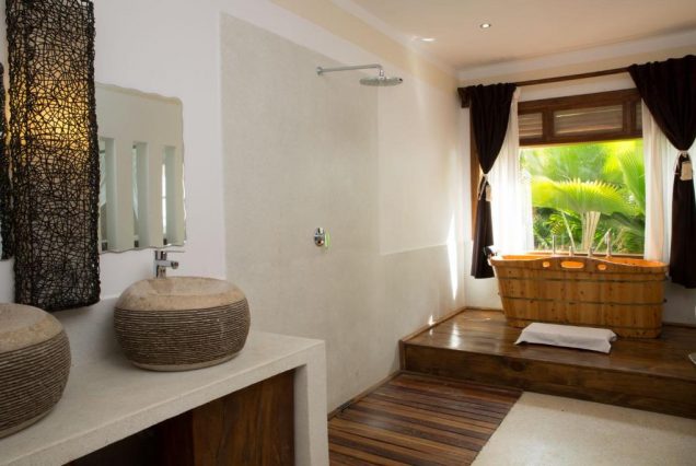 Санузел: тропический душ под открытым небом, мраморная ванна внутри