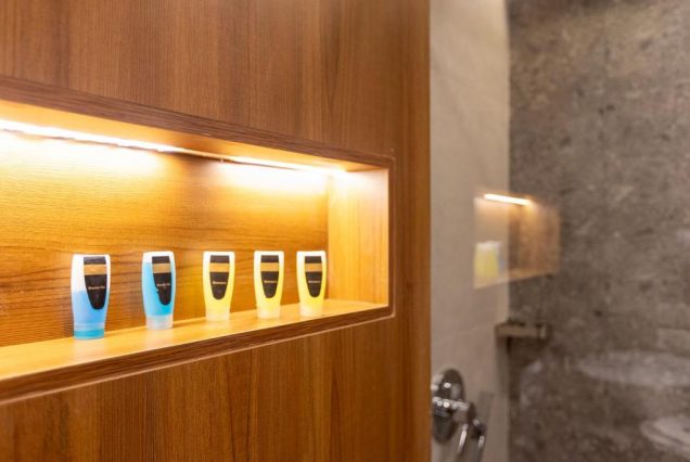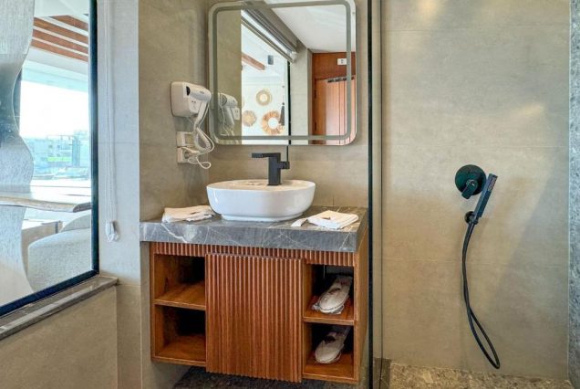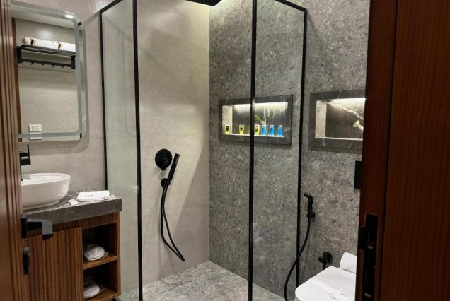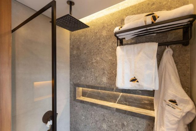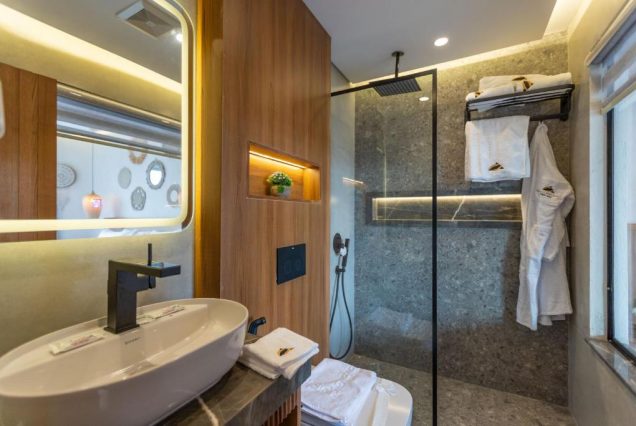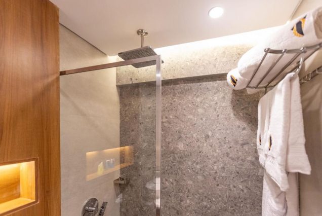 Санузел: ванна, душевая с тропическим душем, двойная раковина, премиальная косметика