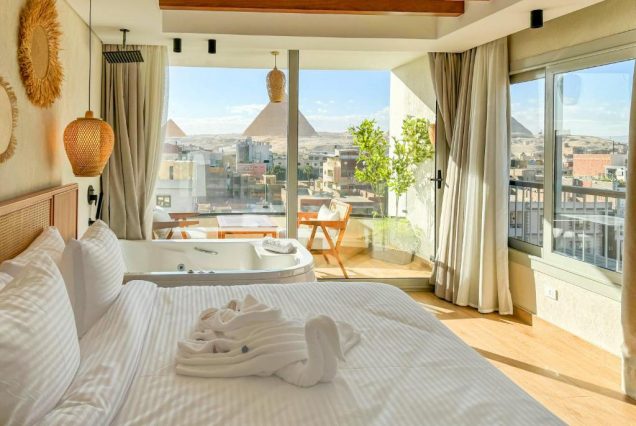 Локации для фото: бассейн с видом на пирамиды, вечерние ужины на террасе, рассветы над пустыней, уютные уголки с восточным декором