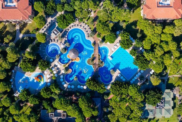 Бассейны: 4 открытых бассейна, детский аквапарк, крытый бассейн с подогревом, зона relax 18+