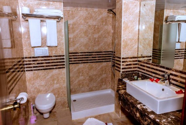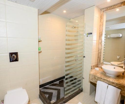 Оснащение: кондиционер, телевизор с международными каналами, бесплатный Wi-Fi, мини-бар с напитками, электрический чайник и набор для кофе/чая, шкаф с вешалками и дополнительными подушками, фен, тапочки и халаты