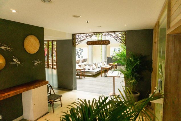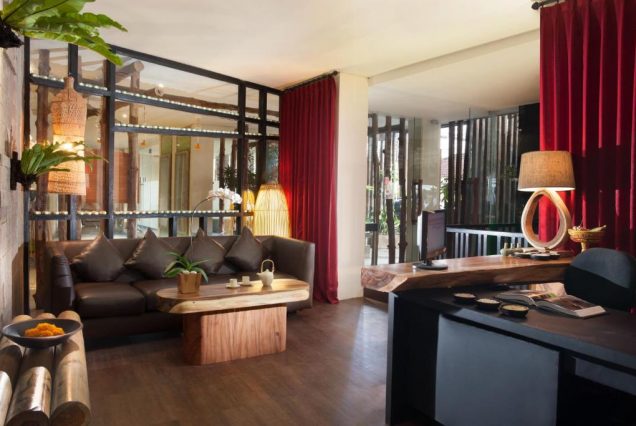 Панорама и архитектура: современный отель в центре Легиана, балийские элементы в интерьере, стильная терраса с бассейном