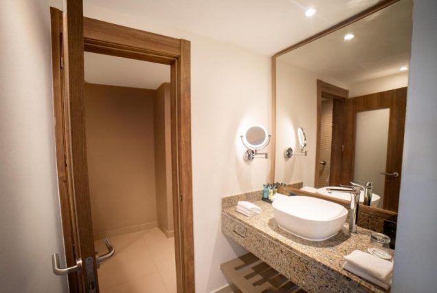 Санузел: просторный с двойной раковиной, тропическим душем и премиальной косметикой