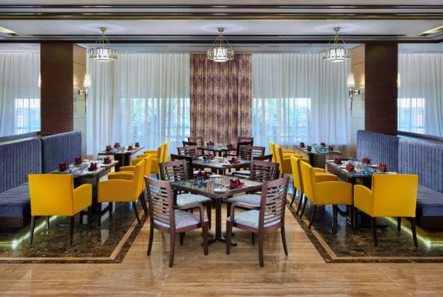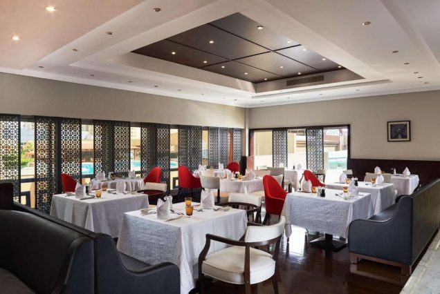 Основной ресторан: The Green Plaza Restaurant — средиземноморская и международная кухня с панорамой на море; подача с 07:00 до 11:00