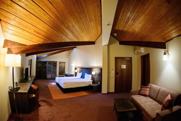 Очень понравился отель, 5 мин от Банско. Виды из номера шикарные на горы и лес. Брали люкс, номер огромный. Отличные внешний и внутренний бассейны с теплой водой. Сауны, спа, массаж супер! Еда вкусная, с местной фермы. Уборка каждый день, каждый раз меняли халаты и полотенца. Кондиционеры спасали от жары. Парковки всем хватало.