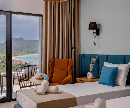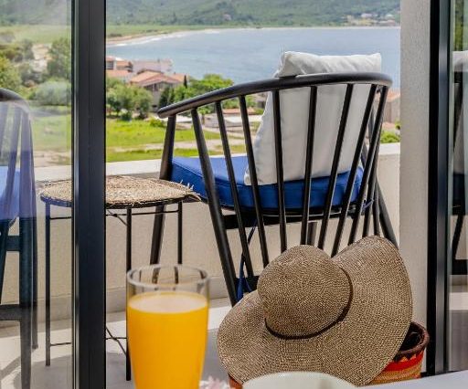 — Заселение в номер с видом на залив, отдых в тени олив и сосен