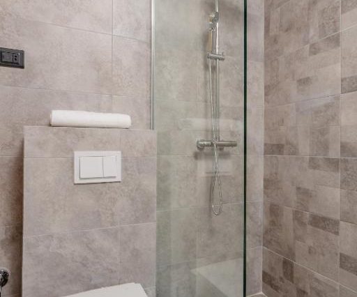 Санузел: душевая кабина с дождевым душем, мраморная отделка, косметика премиум-класса