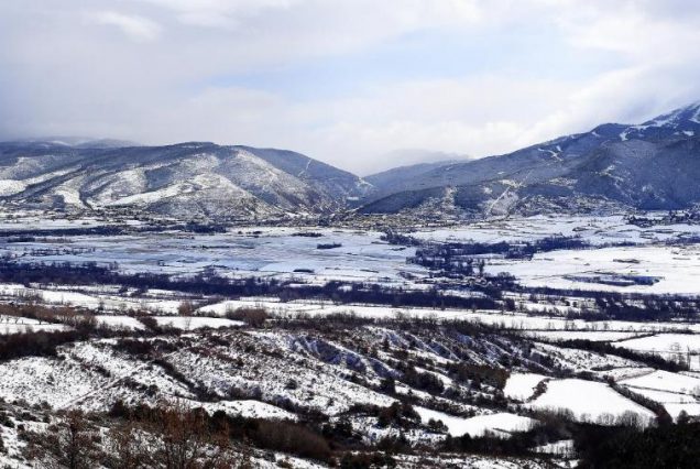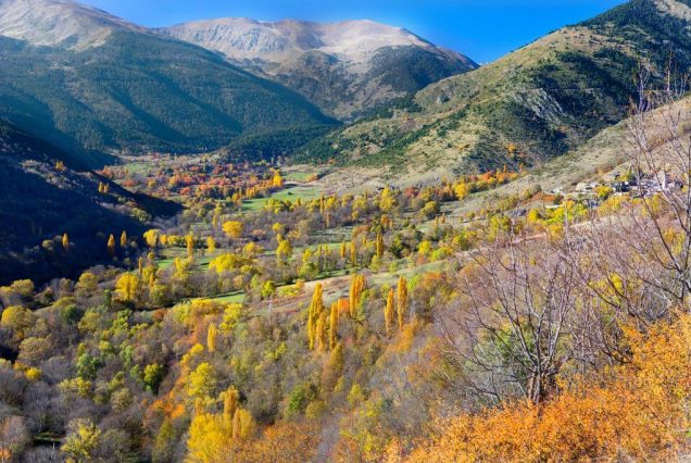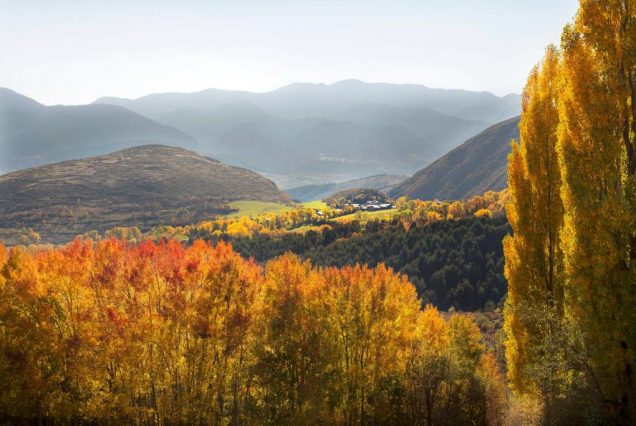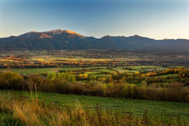 Панорама: леса Каталонии, виноградники, старинные стены масиа