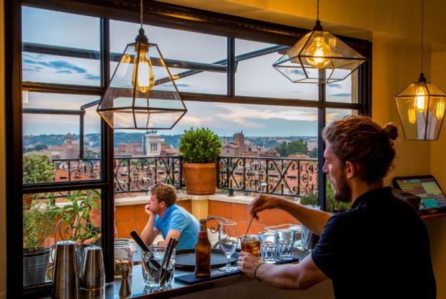– Коктейль на крыше отеля с видом на закатный Рим