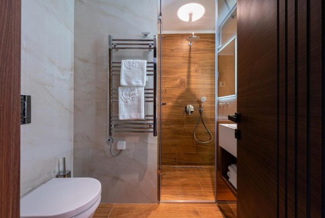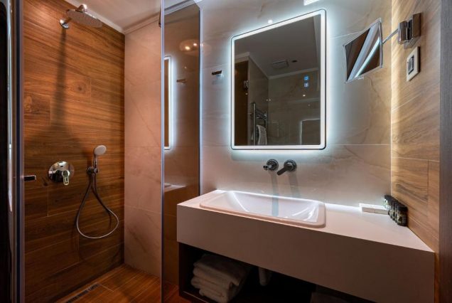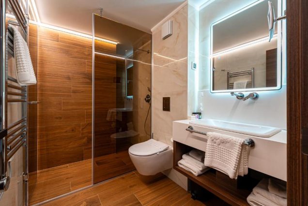 Санузел: ванна и душевая кабина, двойная раковина, премиум-косметика, полотенца из органического хлопка