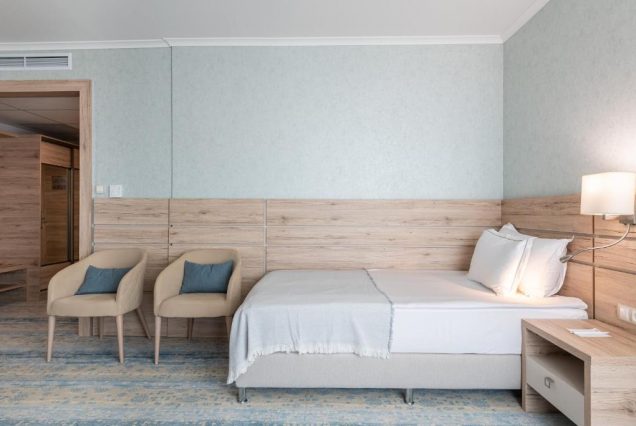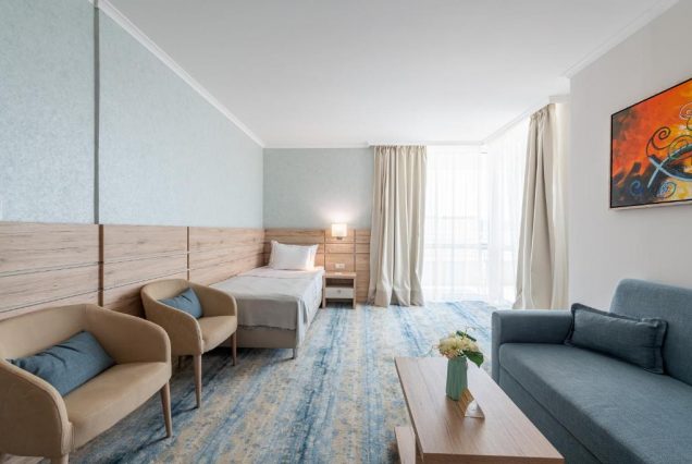 Hotel Neptun Beach — это место, где встречаются морская свежесть и комфорт современного отдыха. Утро начинается с первых лучей солнца, отражающихся в лазурных волнах Черного моря, и мягкого шелеста пальм, создавая ощущение полного расслабления и умиротворения. Вас ждёт простор и лёгкость, а каждый день наполнен уютом и заботой, начинаясь с чашки ароматного кофе на балконе номера с видом на бескрайние пляжи и зеленую зону курорта. Этот отель создан для тех, кто ценит качество, комфорт и отдых в атмосфере спокойствия и природной красоты. Современные номера с эргономичным дизайном, натуральные ткани и приглушённые цвета наполняют пространство гармонией и уютом. Здесь можно наслаждаться морем, прогуливаться по благоустроенной территории или исследовать богатую культуру Болгарии на экскурсиях по близлежащим городам и историческим местам. Вечера дарят возможность провести время на террасе с видом на закат, под звуки прибоя и мягкий вечерний бриз. СПА-центр с процедурами на основе местных продуктов и массажами подарит глубокое расслабление, а вечерние прогулки по набережной подарят незабываемые впечатления. Hotel Neptun Beach — это не просто отдых. Это пространство для восстановления сил, вдохновения и наслаждения каждым мгновением природы и уюта. После этого отдыха вы почувствуете себя обновлёнными, полными энергии и спокойствия.