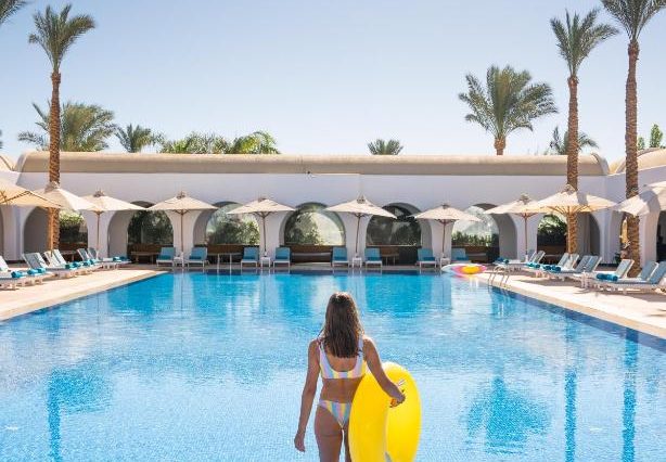Hotel Novotel Sharm El-Sheikh — это комфортный 5★ курорт, расположенный в самом сердце залива Наама-Бей, на первой береговой линии. Отель делится на две части: Beach (прямо у моря) и Palm (через дорогу в саду), что позволяет выбрать формат отдыха — активный у пляжа или более уединённый в зелени. Гостям доступны светлые современные номера с балконами или террасами, видом на сад, бассейн или море. На территории — два просторных бассейна, частный песчаный пляж с плавным заходом, мини-клуб для детей, фитнес-центр, вечерние шоу, рестораны с интернациональной и восточной кухней. Отель предлагает питание по системе «всё включено» или с выбором полупансиона. Благодаря удобному расположению можно легко дойти до променада Наама-Бей с магазинами, кафе и ночной жизнью. Novotel идеально подойдёт как для семей с детьми, так и для пар — сочетая городской ритм Шарм-эль-Шейха с высоким уровнем сервиса, чистыми пляжами и качественной инфраструктурой.