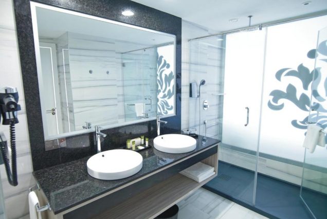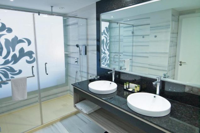 Санузел: ванна и душ, двойная раковина, эко-косметика