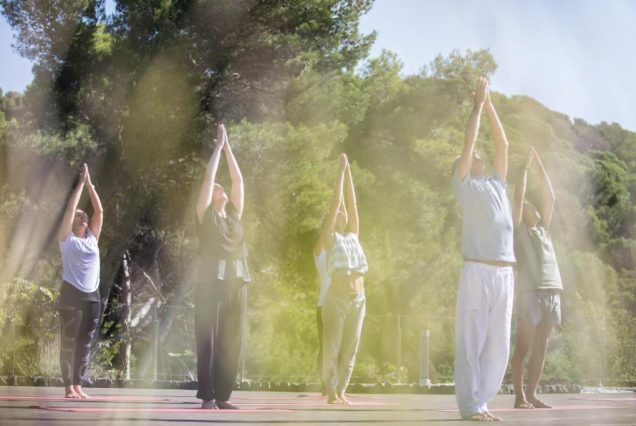 — Утренняя йога среди сосен с видом на побережье (в павильоне или на пляже)