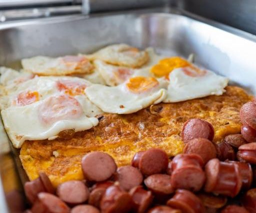 Меню: свежие фрукты, йогурты, омлеты, колбасы, выпечка, сыры, овощи