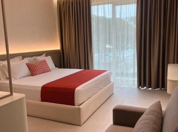 Новый отель, удобно расположенный, с прямым выходом на пляж. Нам понравился бассейн, множество шезлонгов, бар у бассейна и полотенца. Завтрак был обильным и разнообразным, со свежими фруктами. Кровати удобные, а с балкона открывается прекрасный вид на бассейн и море. В номере есть удобный мини-холодильник для охлаждения напитков.