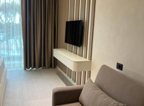 Отличное расположение, замечательный персонал, очень дружелюбный. Отель расположен в тихом месте, среди зелени и спокойствия. Всё новое и чистое. Отель расположен на пляже со множеством удобств. Служба полотенец на пляже также очень хорошо продумана: полотенца выдаются и могут быть заменены в любое время. С точки зрения расположения это один из лучших пляжей в этом районе. Я исследовал всё побережье до Голема и Дурреса.