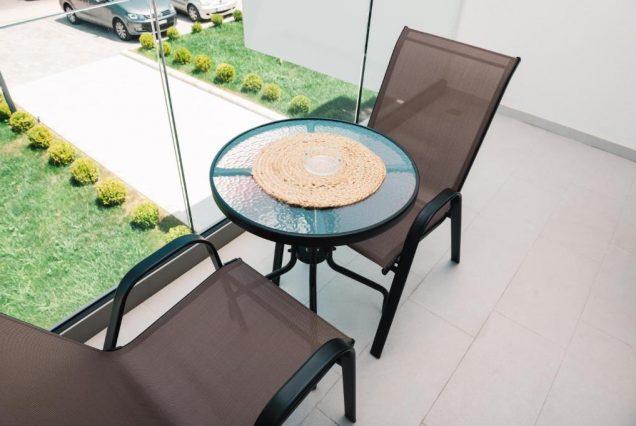 Балкон: небольшой, с кофейным столиком и видом на залив