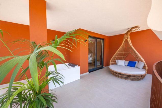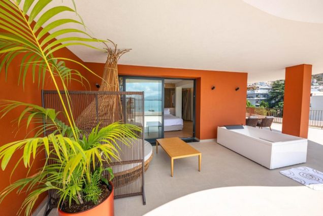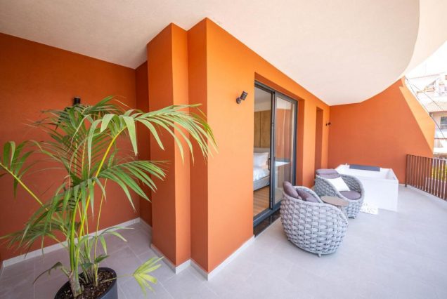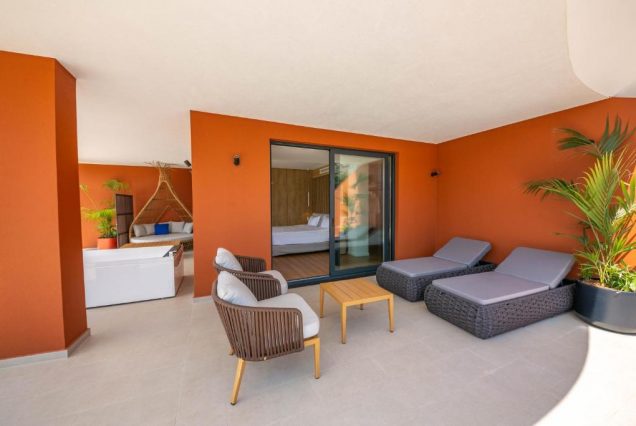 Терраса: приватная, с лежаками, обеденным столом и зонтом от солнца — идеально для завтрака или ужина