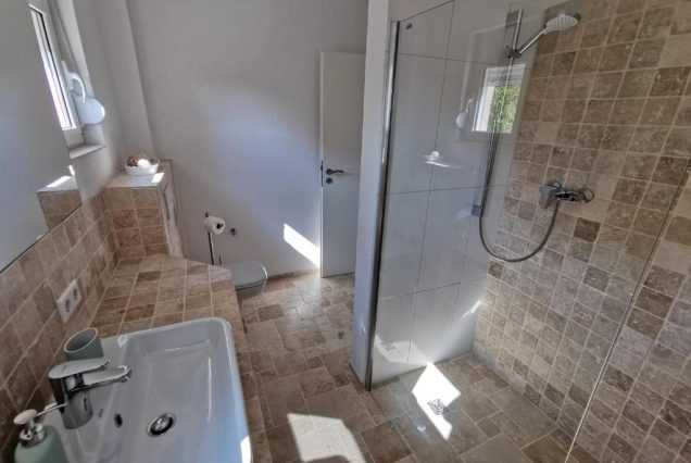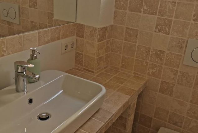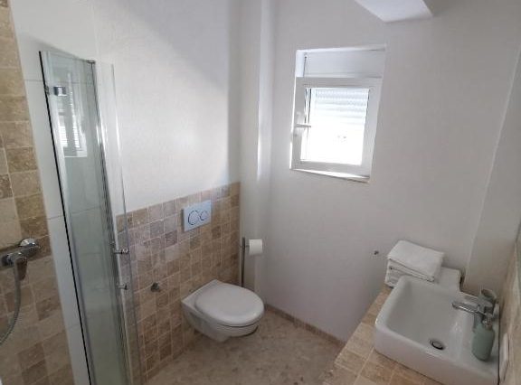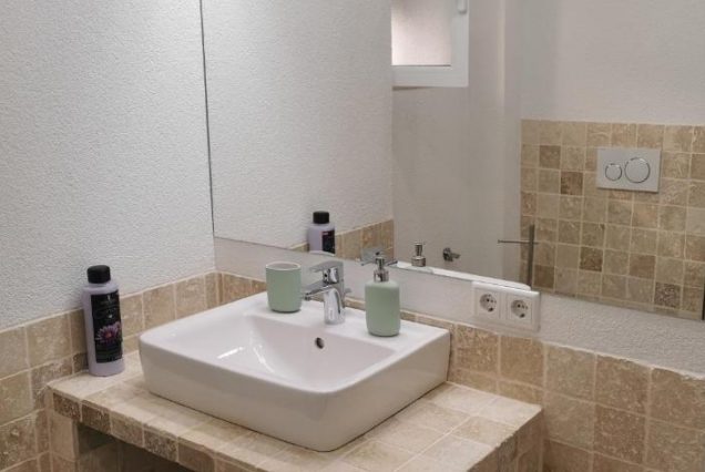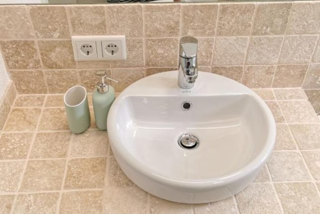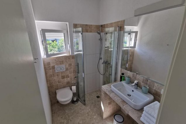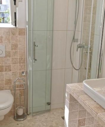 Санузел: ванна с видом на море, душевая кабина, двойная раковина, биде