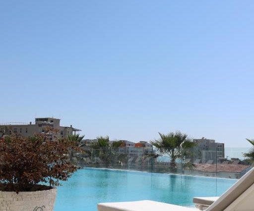 Локация: Албания, Адриатическое побережье, престижный курортный район, на берегу моря, окружённый зелёными холмами.