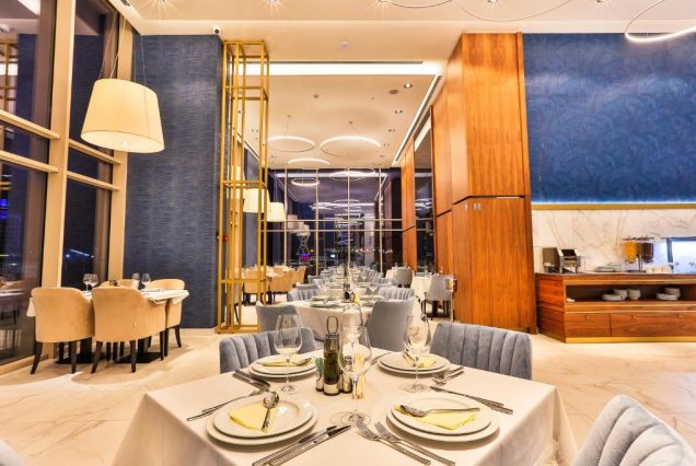 — Лёгкий ужин в ресторане Sky Lounge на крыше отеля с видом на закат и живой музыкой