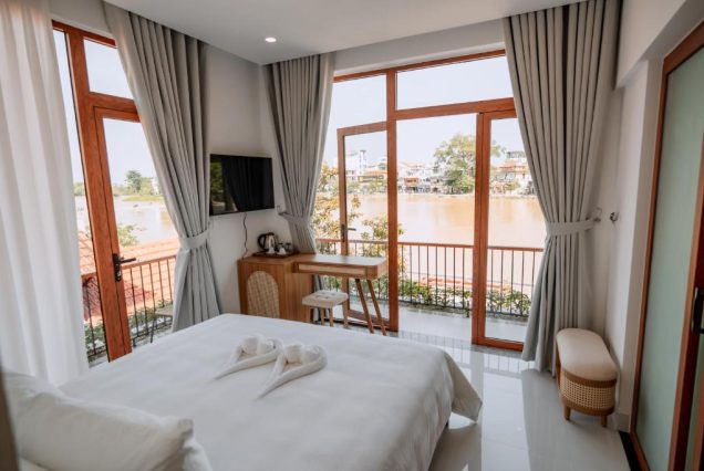 Hue River Side Villa — это место, где каждый момент наполнен атмосферой уюта, природы и вьетнамской аутентики. День начинается с тумана, стелющегося над рекой, и солнца, просвечивающего сквозь листву пальм. Ваш балкон открывает вид на спокойные воды реки Хыонг, отражающие небеса, пагоды и зелень. Это пространство для отдыха, где вы в полной тишине можете насладиться чашкой свежезаваренного вьетнамского кофе, наблюдая за медленным течением жизни. Вилла создана для тех, кто ищет камерность, гармонию и природную эстетику. Интерьеры выполнены в стиле хюэской традиции — дерево, камень, ручная работа, минимум шума, максимум комфорта. Днём вы исследуете древнюю столицу, её Императорские усыпальницы и пагоды. Вечером — ужинаете в уединении у воды, под музыку сверчков и мягкий свет фонарей. СПА на свежем воздухе, прогулки по реке на частной лодке и массажи с эфирными маслами сделают ваш отдых не просто расслабляющим, а восстанавливающим. Hue River Side Villa — это не отель в привычном смысле. Это тихий уголок, где Восток говорит с душой, а природа дарит вдохновение и покой. Вы уедете отсюда другими — полными лёгкости, красоты и внутреннего равновесия.