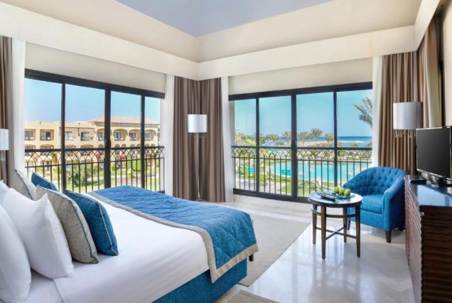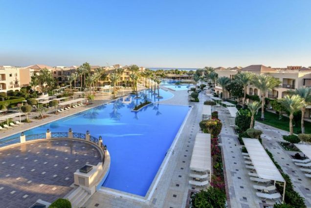 JAZ Aquamarine — это масштабный пятизвёздочный курорт на первой линии Красного моря, где каждый день наполнен солнцем, лазурью и неспешной радостью отдыха. Отель расположен в южной части Хургады и предлагает всё для насыщенного и при этом расслабленного отпуска: 17 бассейнов, аквапарк с горками, просторные территории с пальмами и множеством тихих зон, где можно укрыться от шума. Утро здесь начинается с кофе на балконе с видом на бирюзовый бассейн, днём — пляж, прогулки, спорт, spa, катание по горкам или коктейли в тени, а вечером — ужины на открытых террасах под закатным небом. Просторные номера оформлены в спокойных тонах, с современной мебелью и балконами, а питание включает всё — от восточных сладостей до интернациональных блюд. Это идеальное место для пар, семей, и всех, кто хочет совмещать активный отдых с чувством полного расслабления.