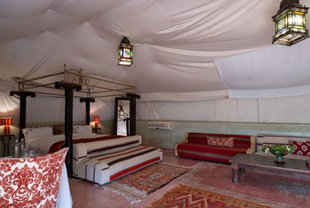 Локации для фото: infinity-бассейн на террасе с видом на пустыню, ужины при свечах на террасе, верблюжьи прогулки на закате, стильные внутренние дворики