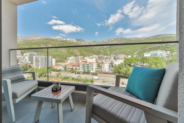 Балкон: с мебелью и видом на горы