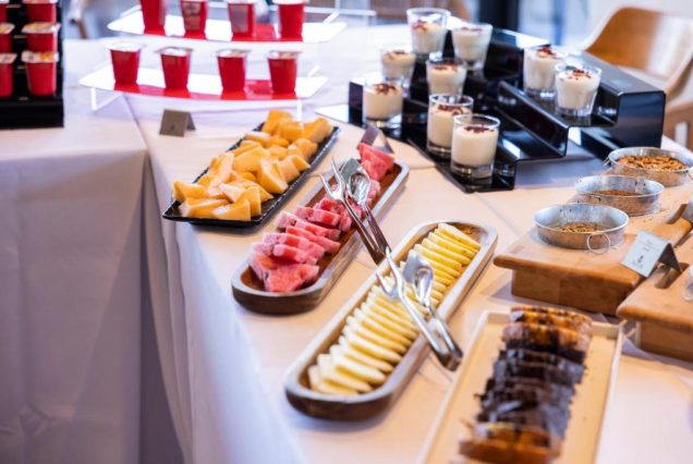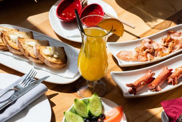 Меню: свежие фрукты, смузи, омлеты, сырная и мясная нарезка, домашняя выпечка