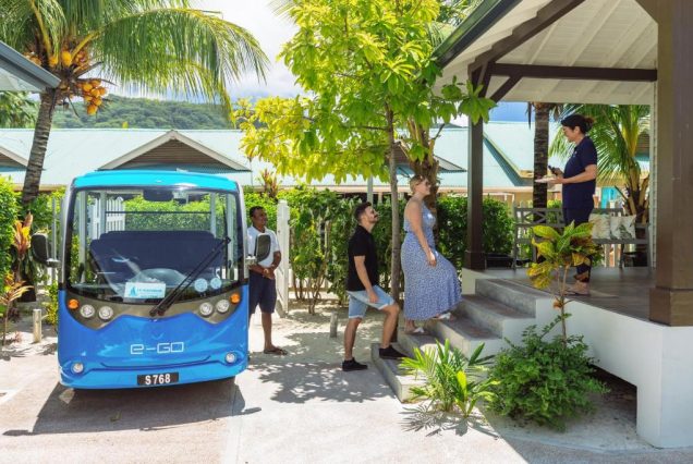 — Трансфер электромобилем до пристани, паром до Маэ, автомобиль до аэропорта