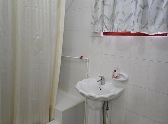 Санузел: просторный, с душем и окнами в сад