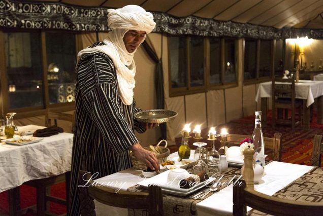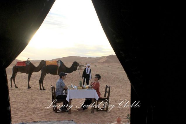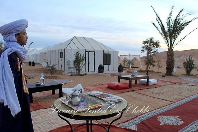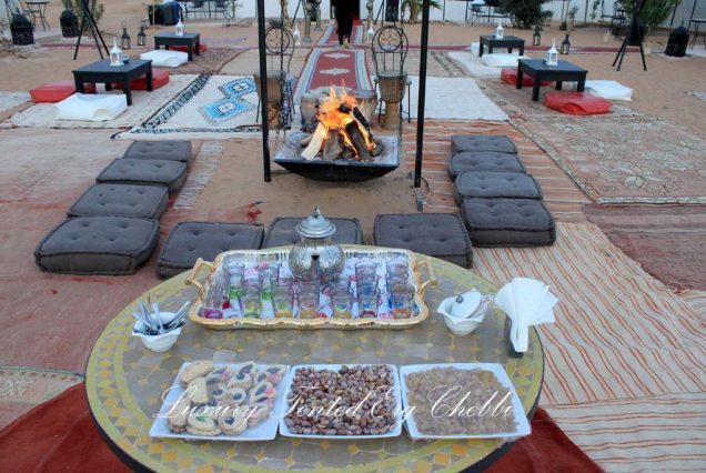 — Прибытие в лагерь, приветственный ритуал: берберский чай, сладости, освежающие полотенца