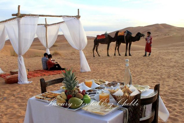 Luxury Tented Erg Chebbi — это уникальное место в самом сердце марокканской Сахары, где каждый день начинается с золотистого рассвета над барханами и звуков пустыни. Просторные шатры с традиционным берберским декором, уединение и тишина создают атмосферу настоящего сафари-ретрита. Здесь вас ждёт не просто отдых, а глубокое погружение в природу и культуру Марокко — с верблюжьими прогулками на закате, звёздными ночами у костра и кулинарными открытиями в пустынном лагере. Luxury Tented Erg Chebbi создан для тех, кто ищет вдохновение, романтику и отключение от мира. Шатры оснащены как люксовые номера — с мягкими кроватями, коврами ручной работы, уютной террасой и всеми удобствами. Вы будете наслаждаться тишиной, общением с местными гидами, горячим мятным чаем под звёздным небом и глубоким ощущением свободы. Это не просто отель — это портал в мир спокойствия, традиций и силы природы. После такого путешествия вы возвращаетесь обновлённым, наполненным и по-настоящему отдохнувшим.