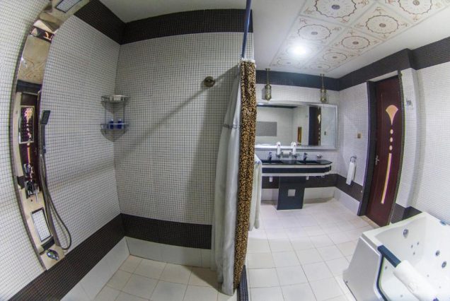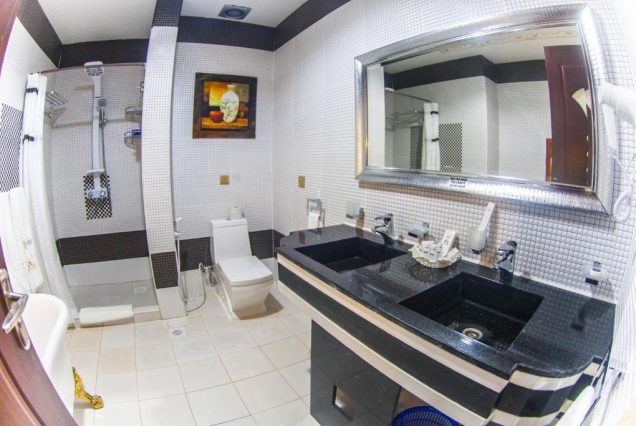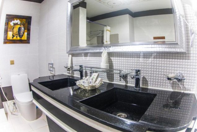 Санузел: ванна с гидромассажем, душевая с тропическим душем, двойная раковина, премиальные туалетные принадлежности