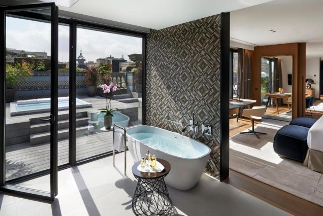 Бассейны: крытый бассейн в SPA-зоне, open-air бассейн на крыше — с панорамой на Барселону