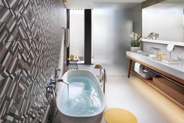 Оснащение: система «умный номер», медиацентр, Illy кофемашина, чайный сет, мини-бар, гладильные принадлежности
