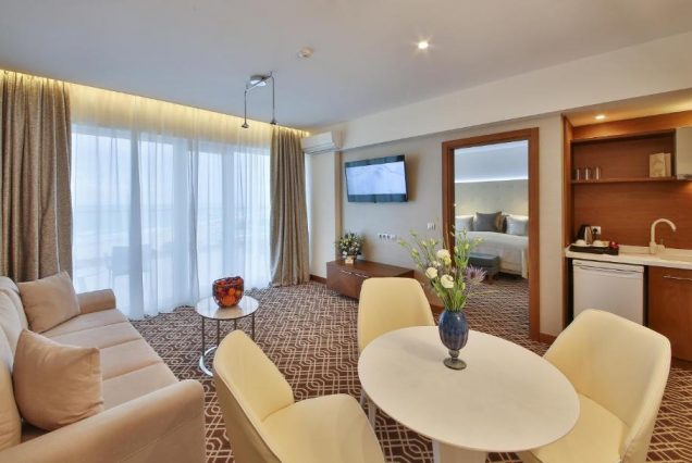 Категория: Deluxe Sea View Room — светлый, стильный номер с балконом и прямым видом на Чёрное море