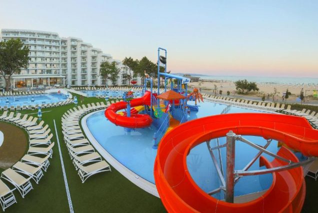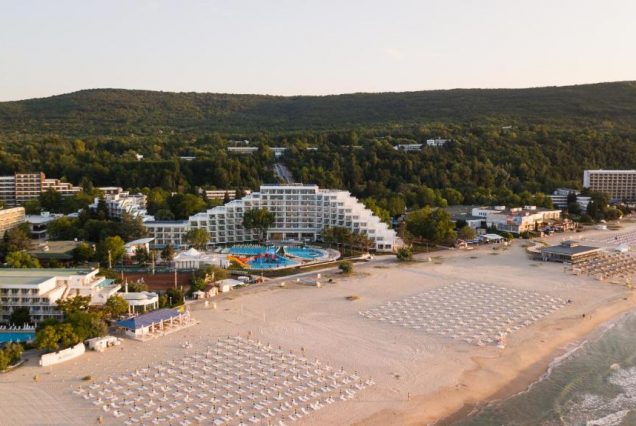 Maritim Hotel Paradise Blue 5★ — элегантный курорт в самом сердце Албены на берегу Чёрного моря. Вокруг — простор, солнце, золотой пляж и зелёные аллеи. Интерьер отеля — современный, сдержанный и светлый, атмосфера — спокойная и респектабельная. Просторные номера с видом на море, утренние завтраки на террасе, тишина парков и звуки прибоя. Подходит для тех, кто ценит эстетику, уединение, wellness-уход и тёплое европейское море в шаге от комфорта. Всё продумано для отдыха в стиле балканского легкого шика.