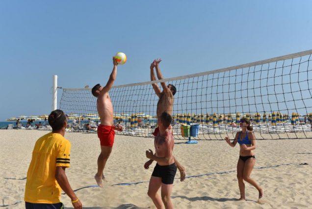 — Пляжное утро: купание, шезлонги, тёплый ветер
