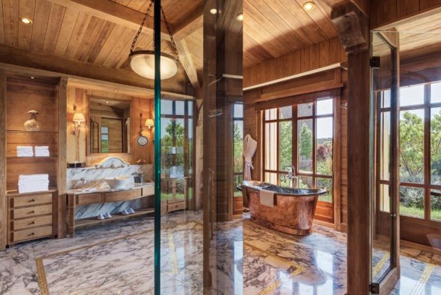 Санузел: ванна с гидромассажем, душевая с тропическим душем, двойная раковина, биде