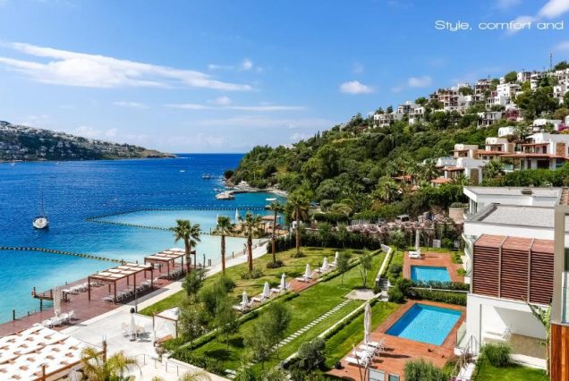 Локация: Турция, Бодрум, берег Эгейского моря, престижный курортный район, окружён зеленью и холмами.