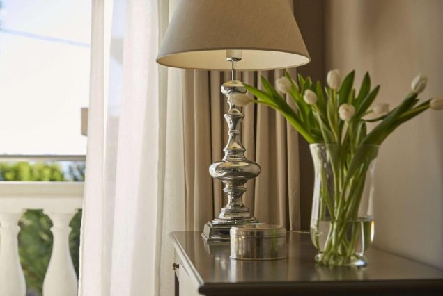 — Оформление: современный и элегантный интерьер в тёплых тонах, сочетание уюта и греческой эстетики