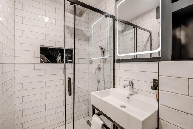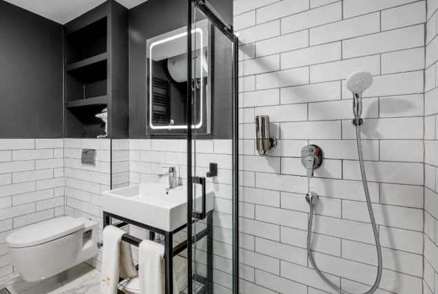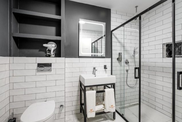Санузел: ванна с видом, душевая кабина, мраморная отделка, премиум-сантехника